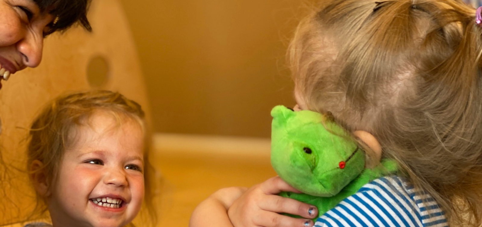 ButtonGemeinsames Lachen stärkt die Beziehung zwischen Fachkraft und Kind.